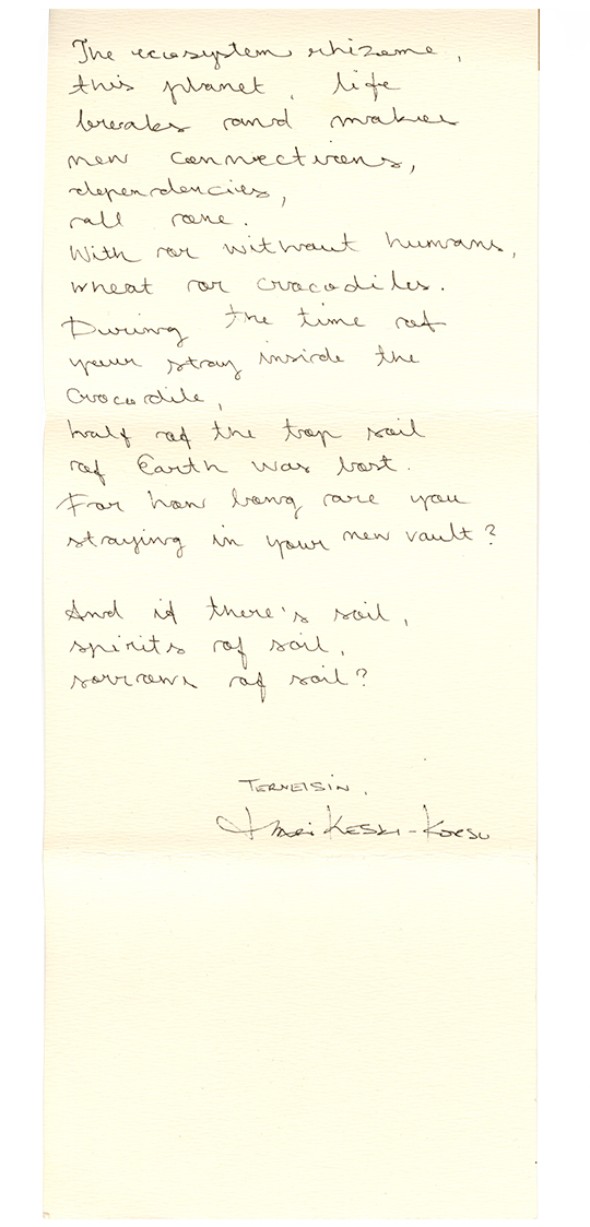 All texts and images found on this microsite are the property of the individual authors and may only be reproduced with permission of the authors themselves, cc. The Migrant Ecologies Project.